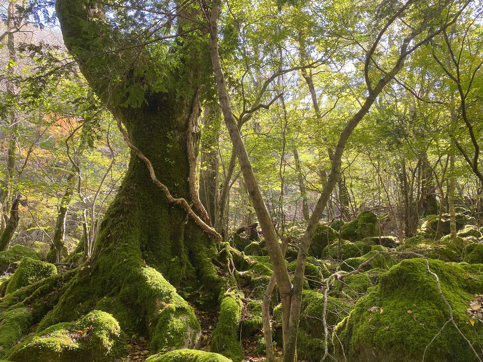 今回のDance with Natureは阿蘇くじゅう国立公園に含まれるくじゅうエリアで開催致します。広大な草原と現在も活動を続ける火山群でもあり、九重連峰の東端に位置する黒岳の麓には清らかな水が湧く男池湧水群があり、炭酸泉の白水鉱泉もその湧水群に含まれます。今回、ベースとさせていただく白泉荘はその黒岳の登山口にあり、ブナやミズナラの巨木が茂る生命力に溢れた原生林に包まれています。