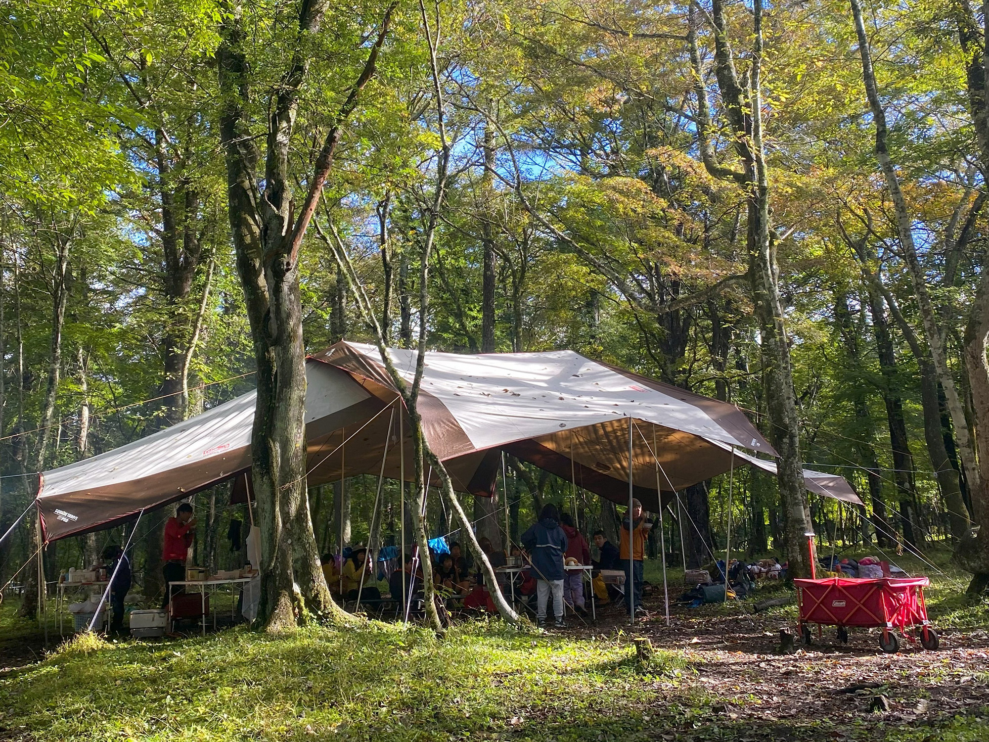 黒岳の麓の自然豊かな森に子どもひとりひとりのソロテントを設営。森のみんなで集まれる広場に大タープを張り、快適なキャンプベースを作ります。 雨天時も安心して過ごせますし、みんなで集まる場所は解放空間ですので感染症に対しても安心です。 木漏れ日の美しい森。標高720mの生命力に溢れた森は夏でも涼しく、夜は森の生命に抱かれて休めることでしょう。 二日目の夜はみんなで薪を集め、キャンプファイヤーを一緒に創りましょう! 飲み水は白水鉱泉の美味しい炭酸泉の湧き水をいただきます。