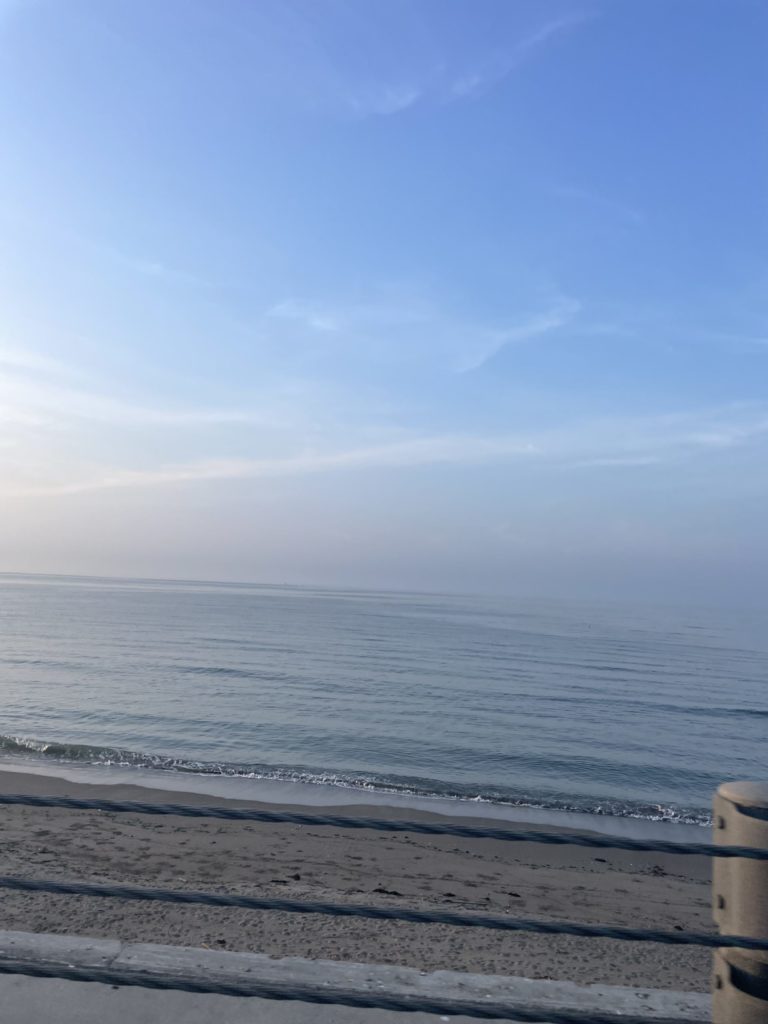 福岡から飛行機で飛んできた母子を乗せて、御殿場へ向かう葉山組の車窓からの湘南海岸フォトなり。