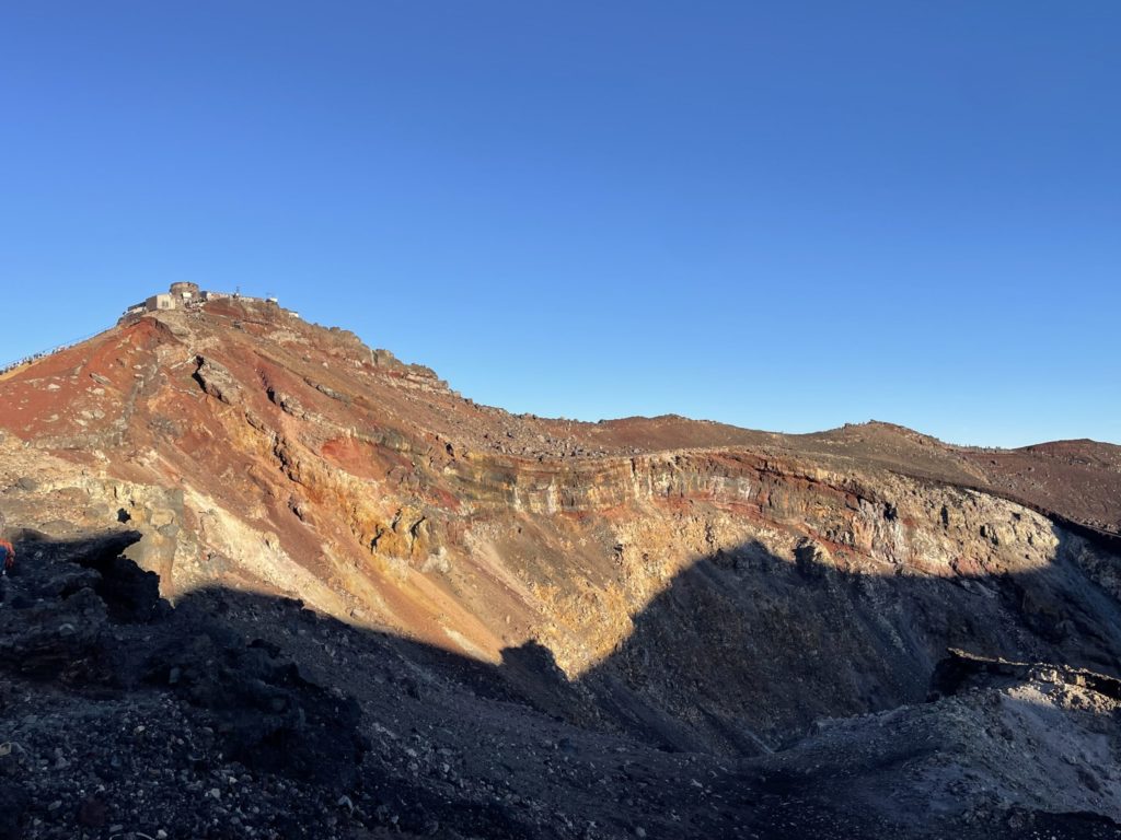 登る時は第一火口が大きく見えたのに、富士山に登って下山してきて眺める火口は小さく見えますね。