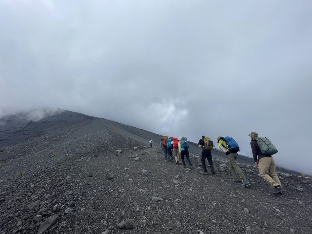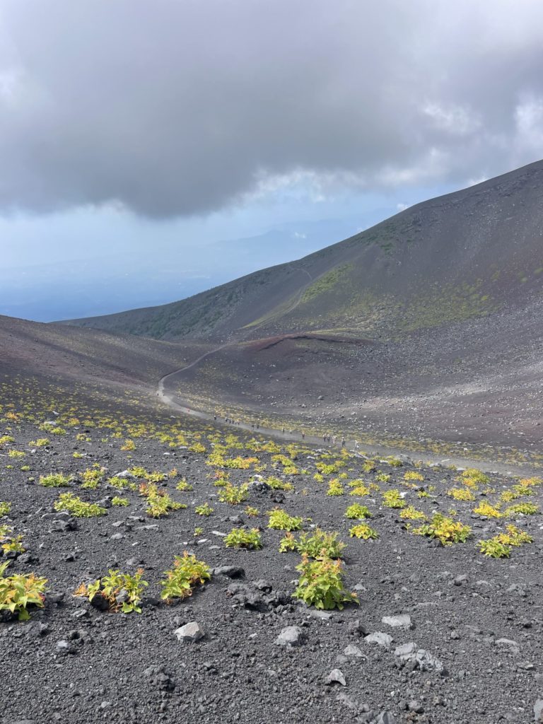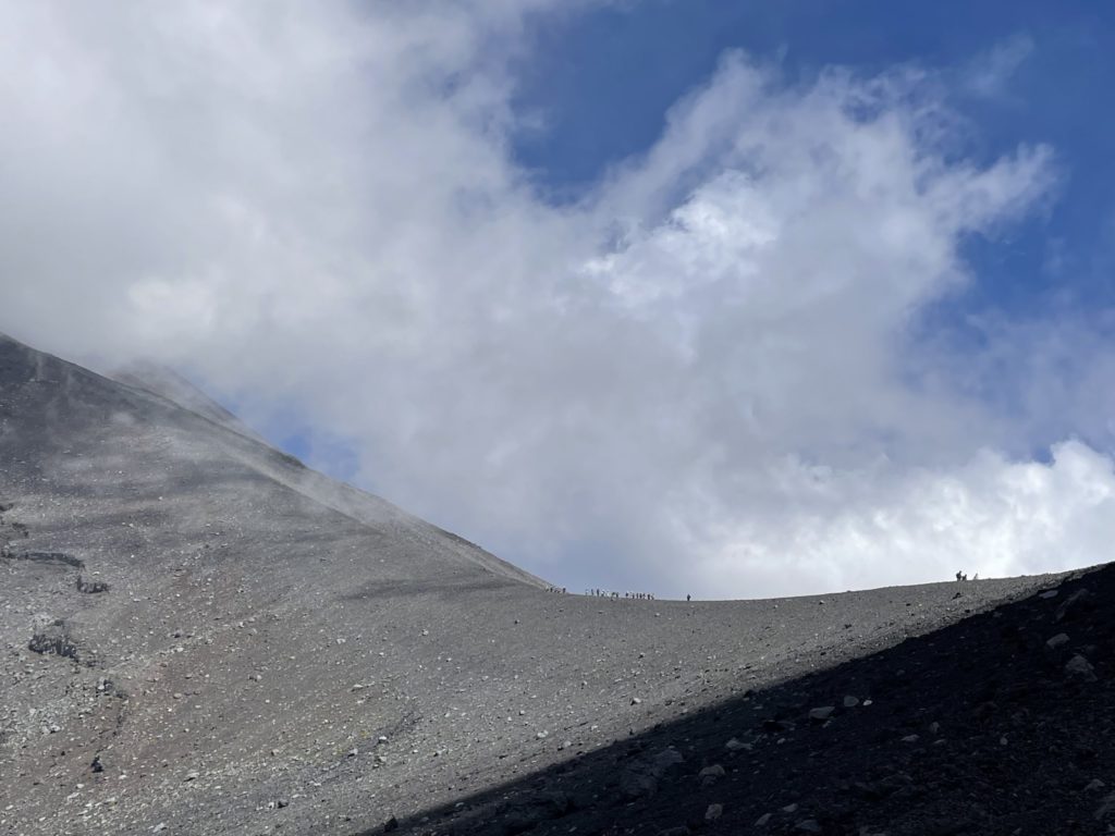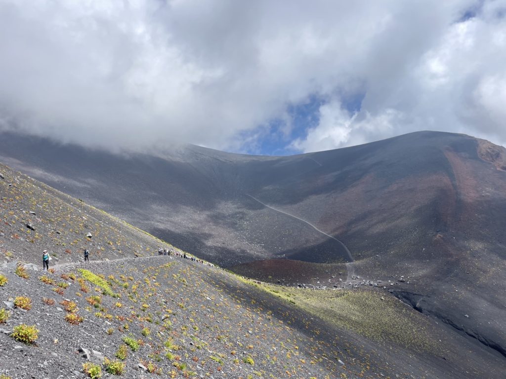 山のスケールが大きく、人が小さい。富士山登山の醍醐味を山と人の大きさの比率から感じ見るよね!