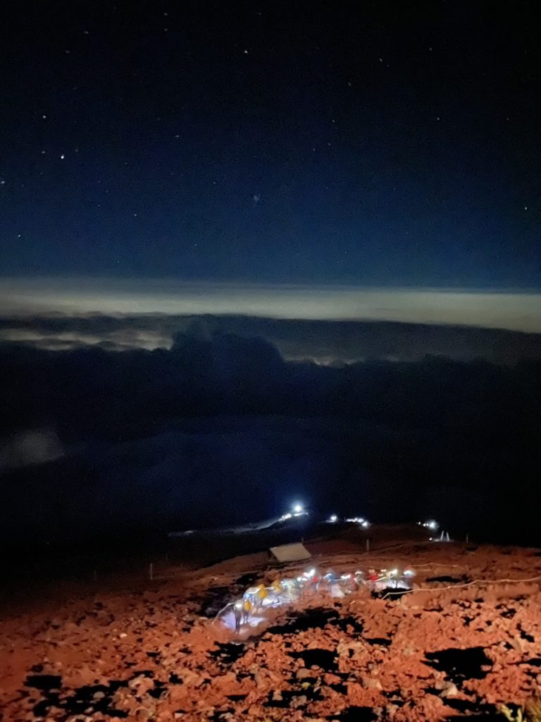 満天の星を眺めては休んで、歩いてを繰り返し、少しづつ、少しづつピークへ向かっていきます。