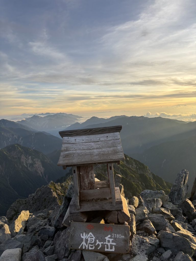 昨年の蝶が岳で目にした残照に輝く槍ヶ岳の姿に、子どもたちが希望した今回の登山。