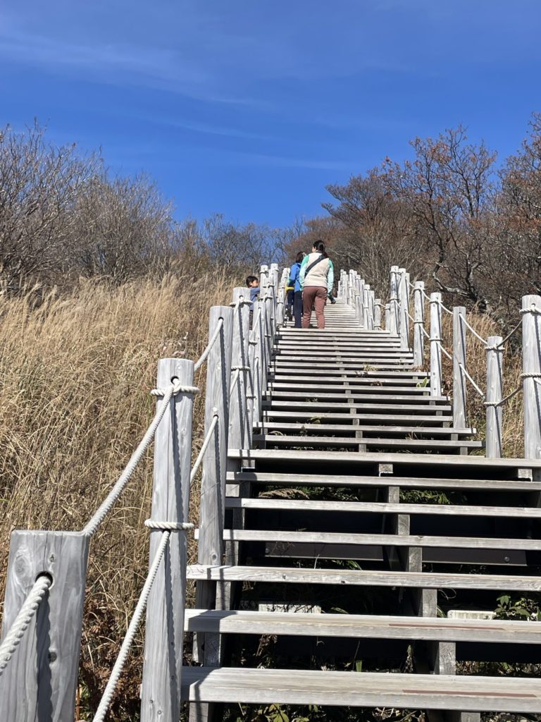 元気いっぱいの子どもたち。頂上まで続く階段をどんどこ駆けって登っていきました。