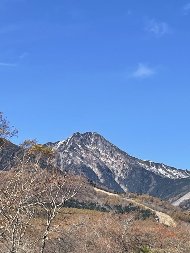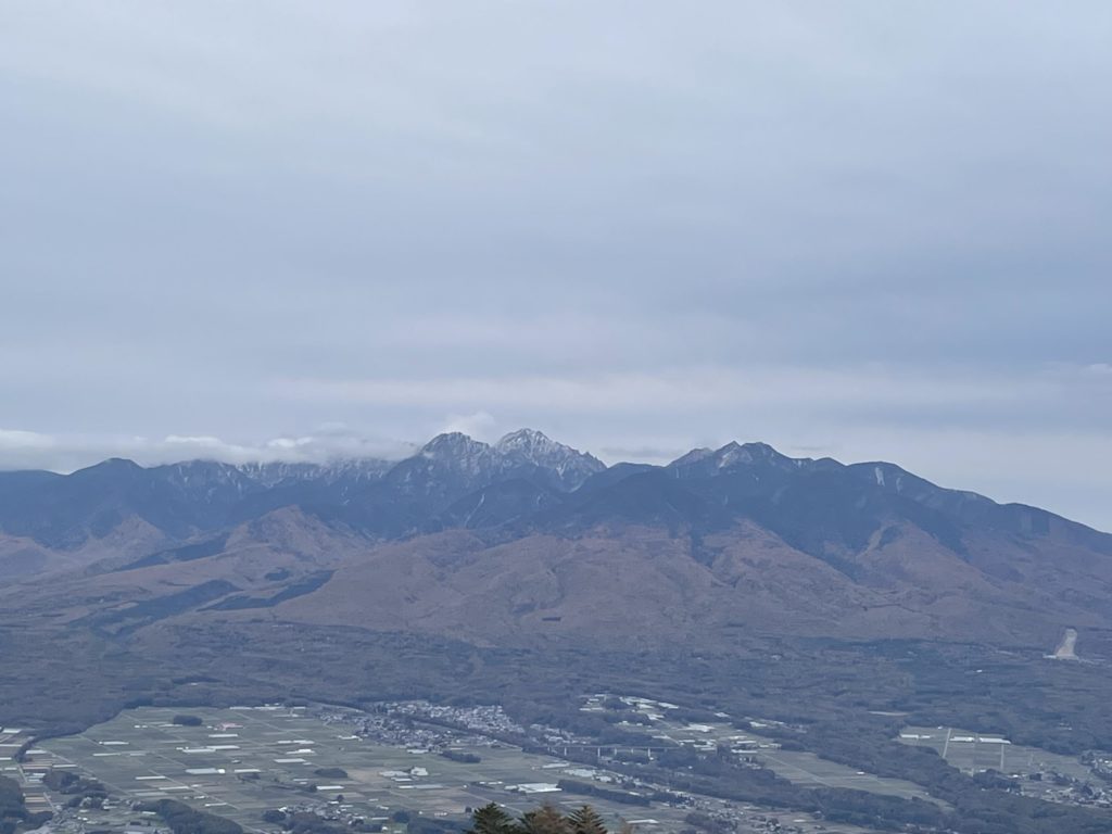 雪化粧をした八ヶ岳連峰。遠く聳える山に向き合う。