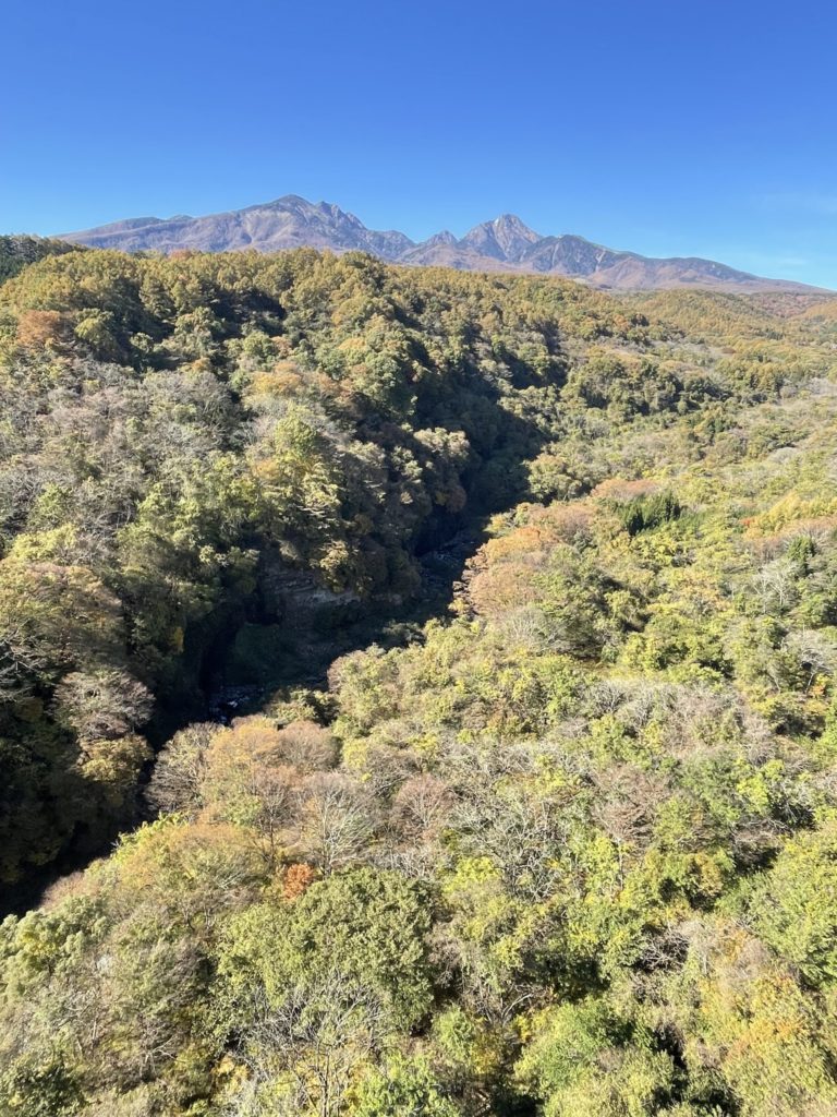 深い谷間に沢が流れ、自然の息づくパワー、迫力を感じる景色です。