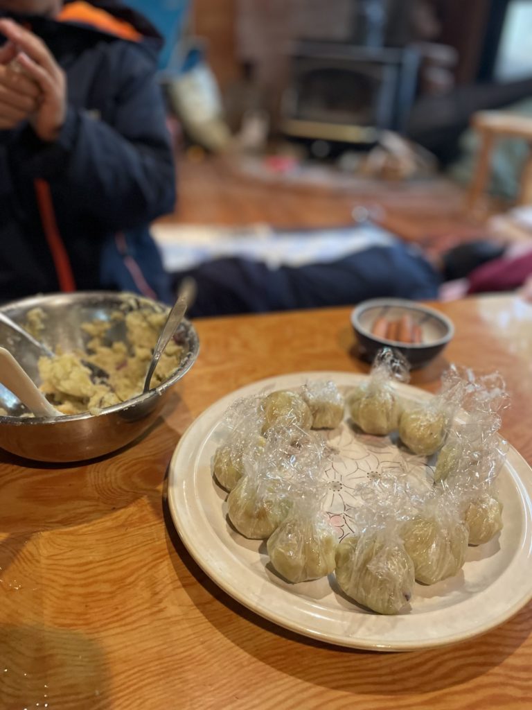 お部屋でゆっくり組は白州産大きな1本のお芋を蒸してスウィートポテトを作りました。