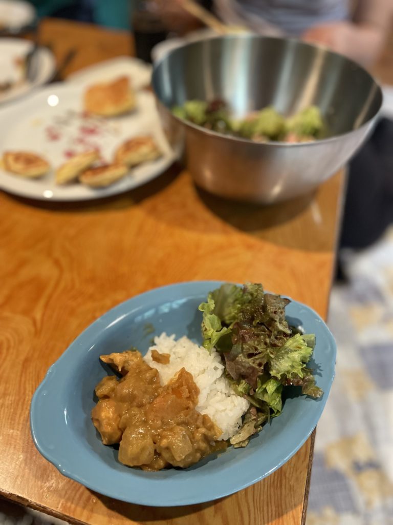 2日目の夕飯はカレーを作りました。玉ねぎを丁寧に炒めて、野菜を切って、、。
