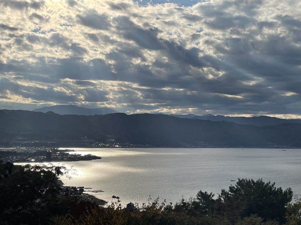 山の上にある諏訪湖とアルプス連邦を展望できる立石公園に行きました。