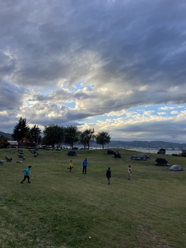 午後からひろーい自然にふれあいに諏訪湖へ行きました。