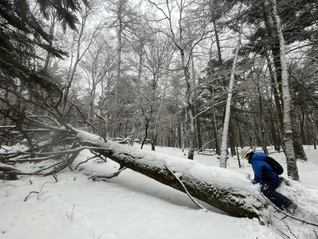 倒木にまたがり、木登り?みたいに上って行きまーす。