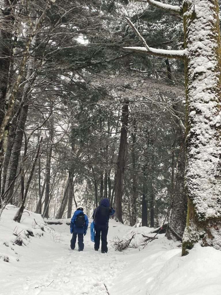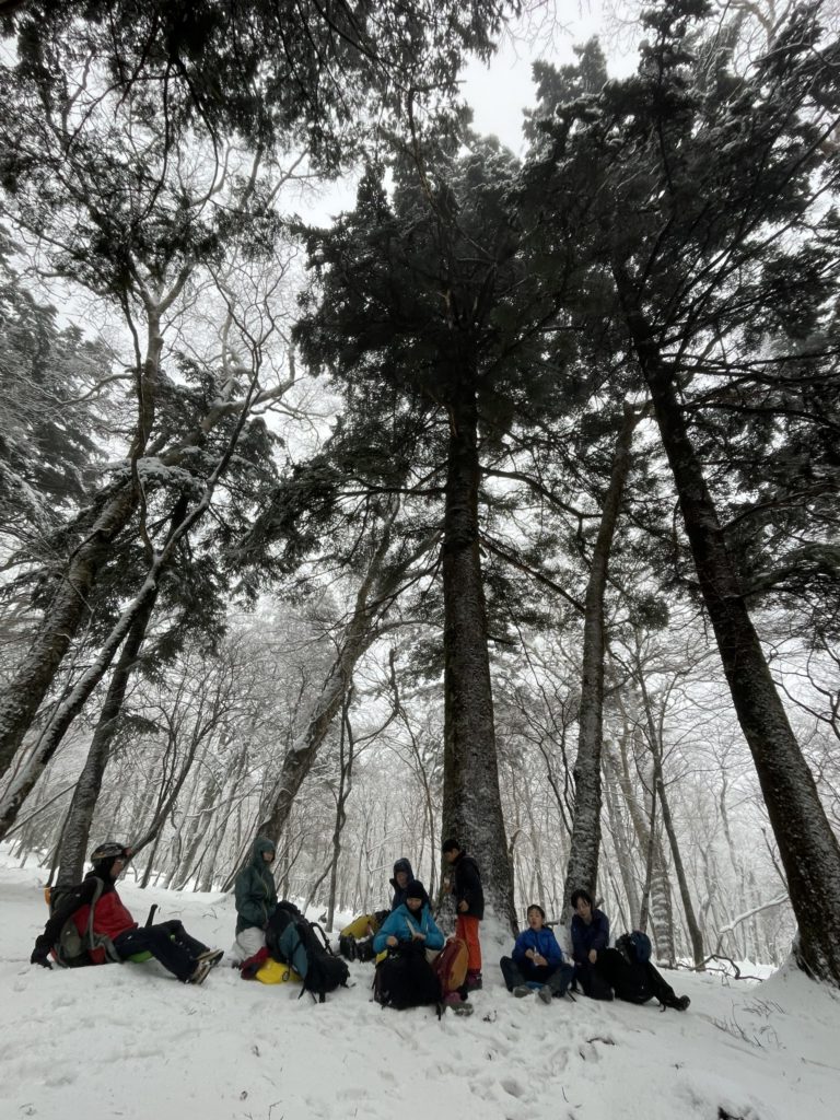 止まると急に身体が冷えます。冬山は汗をかかないように歩きましょう。