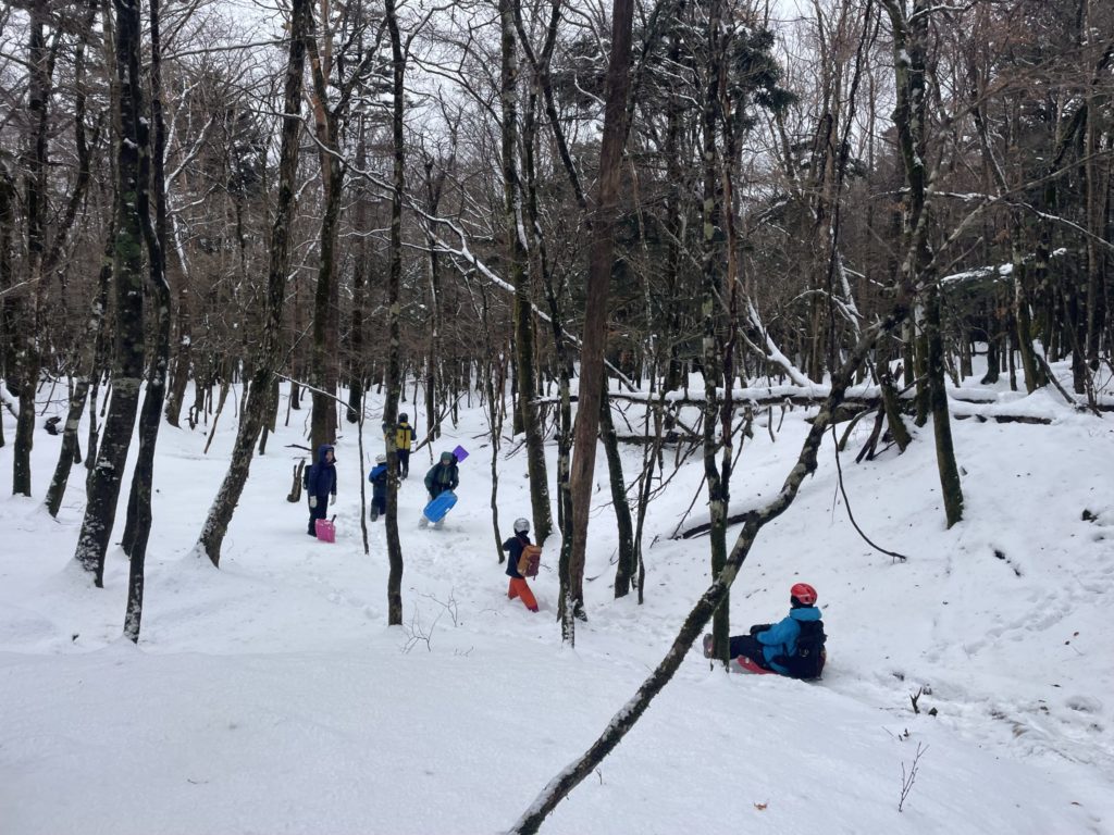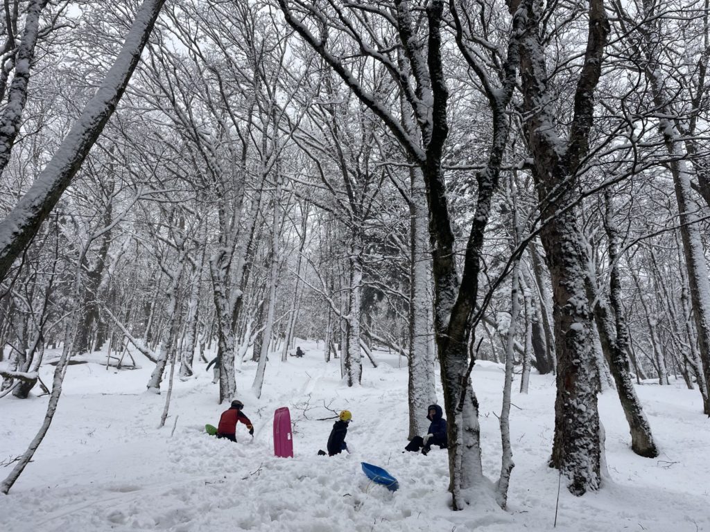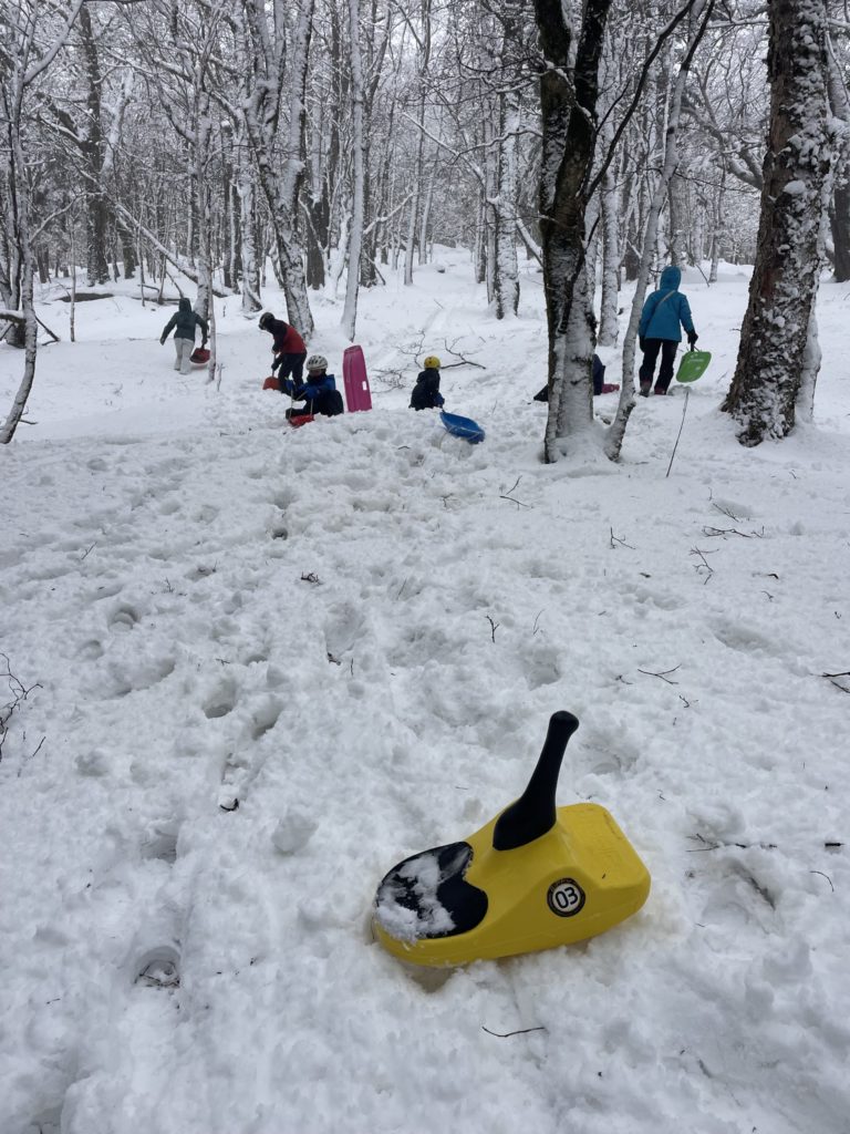 いい斜面! ジャンプ台を作ったり、そり遊びを楽しみました。
