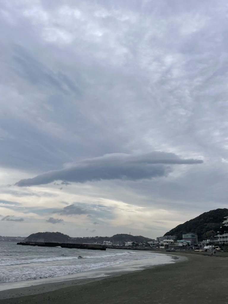 羽を広げた飛行機みたいな雲。鉄の酉かしら、、。