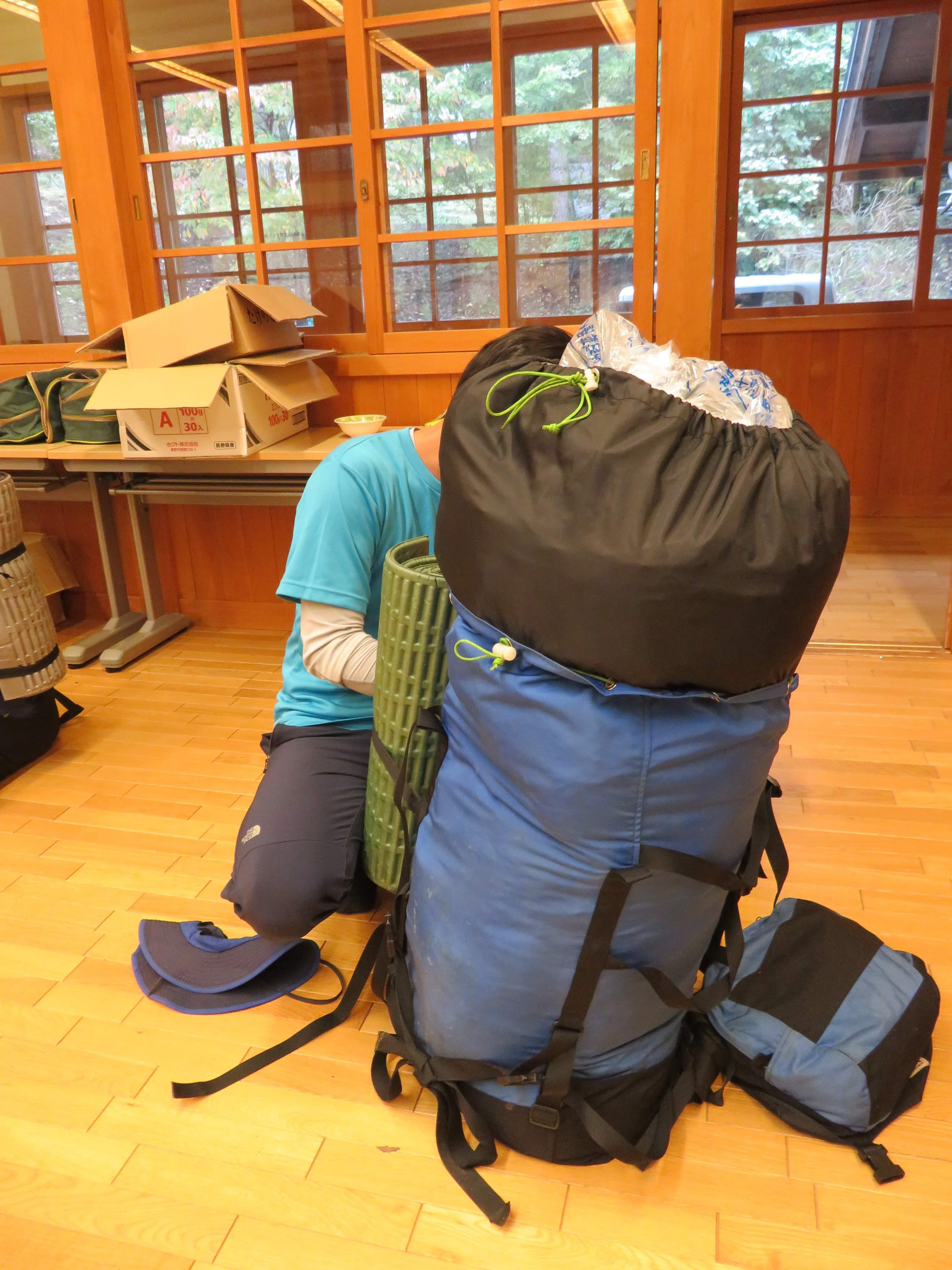 - この荷物!背負って子供たちと歩きます。