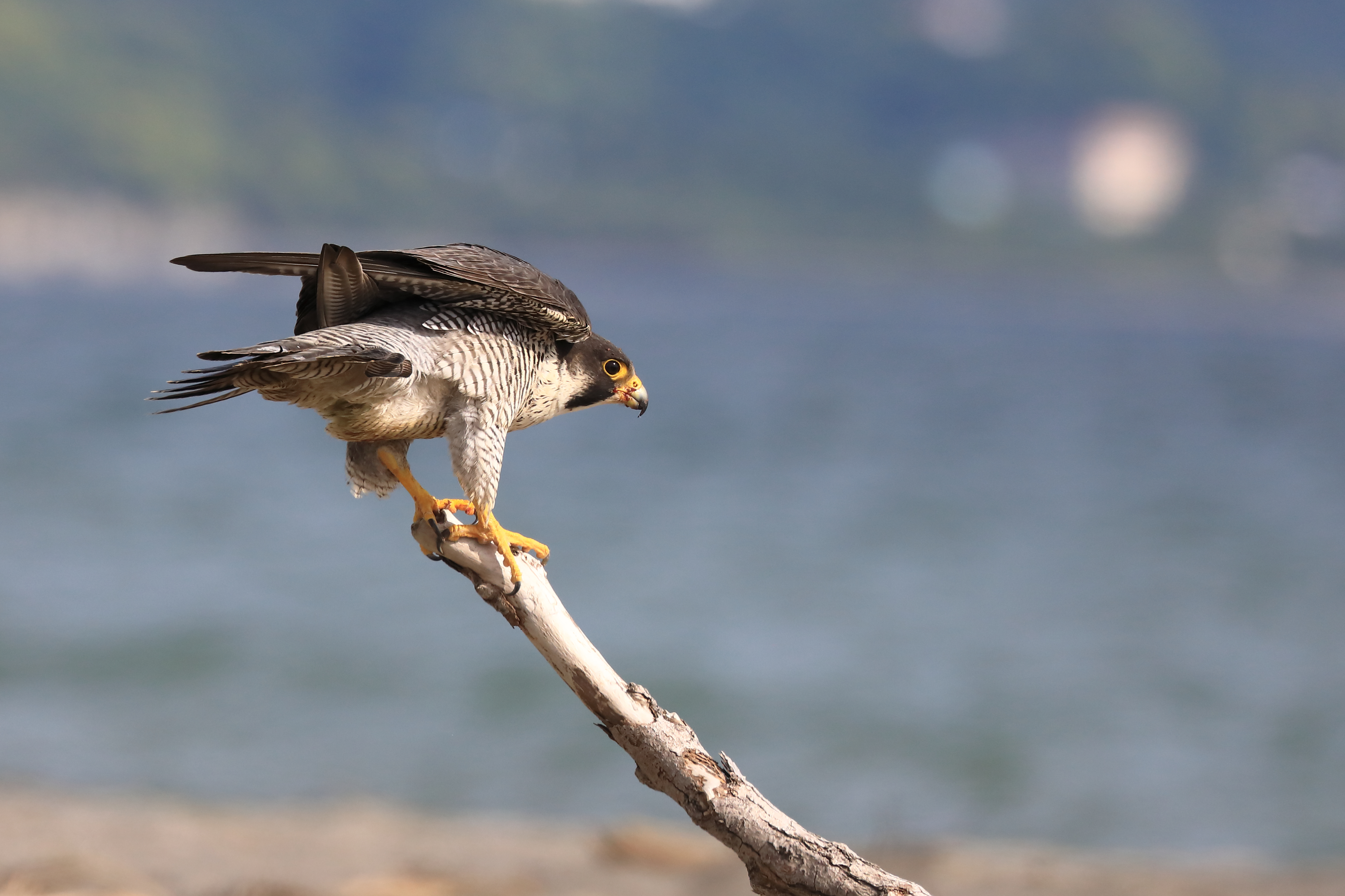 巣⽴ち後もしばらく給餌の世話は続きます。しかし同時に、親たちは⼦たちへ、⽣きる術を教え始めます。例えば⾶び⽅。巣⽴った雛たちはしばらく近くの枝に並んで留まってたりします。親たちは給餌しながらも、餌を加えたままちょっと離れたところに留まって、雛に⾶んでくることを促します。こうして雛たちは⾶び⽅を覚えていきます。⾶び⽅を覚えて、雛の姿も成⿃に近づいた頃になると、狩りを教え始めます。親たちは餌を咥えて持ってきますが、与えません。⾒せるだけです。つまり、⾷べたかったら⾃分で獲りなさい、というわけです。それでもわがままな⼦は親から無理やり餌を奪い取ったりすることもあります。雛たちはやがて⾃分たちで⾷べ物を⼿に⼊れなくてはならないということを悟り、低い枝から⽔⾯をジッと⾒つめ始めます。⾶び込むにはまだ勇気がでないのです。まだくちばしの短い幼さの残る幼⿃、とても健気で可愛らしく⾒えます